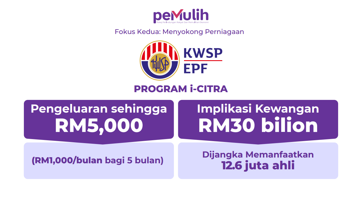 Selain daripada Bantuan Khas COVID-19, Perdana Menteri turut mengumumkan i-Citra KWSP iaitu kemudahan pengeluaran sebanyak RM5,000 daripada akaun KWSP bermula bulan Ogos.