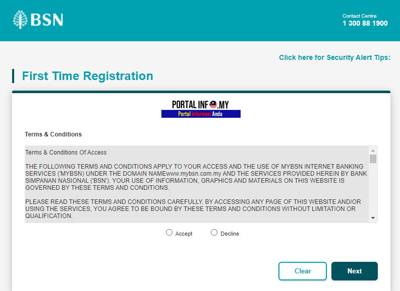 3. Sila baca kesemua terma dan syarat yang telah ditetapkan oleh BSN. Untuk menggunakan perkhidmatan MyBSN, anda perlu tandakan pada ruangan ‘setuju’ atau ‘accept’.